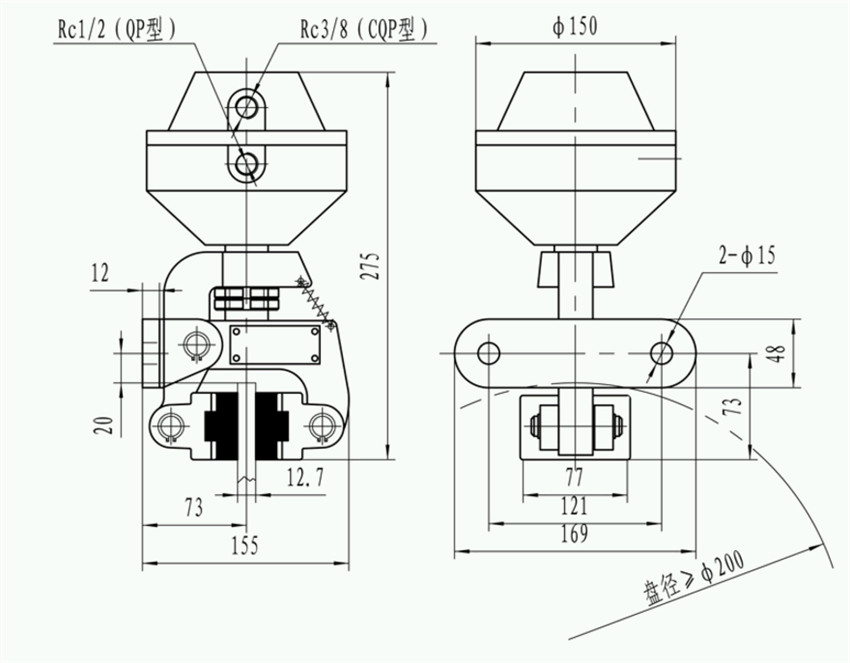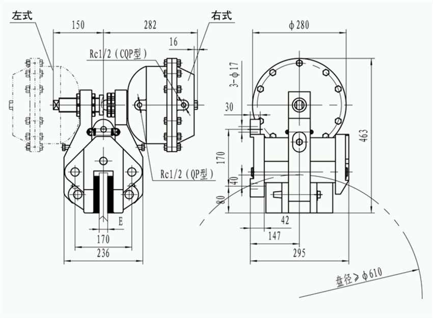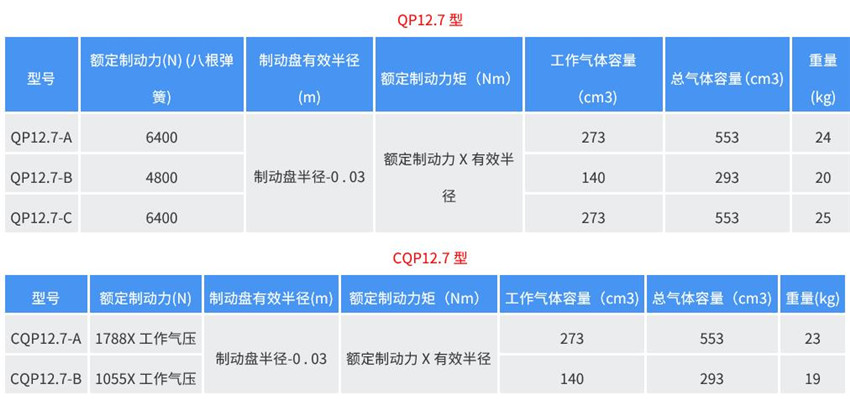 QP系列為彈簧制動(dòng),氣動(dòng)釋放;CQP 系列為氣壓制動(dòng),彈簧釋放。