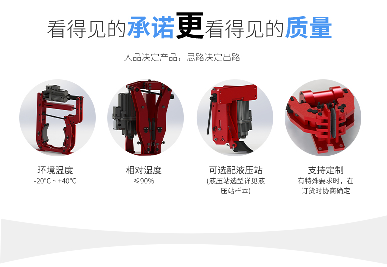 三、質(zhì)量過硬的主推產(chǎn)品公司以市場為導(dǎo)向,不斷開發(fā)培育新品種,開發(fā)推廣的優(yōu)良新品種有盤式制動(dòng)器(安全制動(dòng)器SB,SBD系列、電力液壓臂盤式Y(jié)PZ2系列、氣動(dòng)鉗盤式QP(CQP)系列)、鼓式制動(dòng)器(電力液壓YWZ系列、電磁鼓式ZWZ3系列、腳踏式TYW系列以及帶式制動(dòng)器DZ系列)、防風(fēng)制動(dòng)器(液壓輪邊型YLBZ系列、頂軌式Y(jié)DGZ系列和夾軌器YJGQ系列)和驅(qū)動(dòng)裝置(Ed系列、YT1系列和隔爆型BEd系列)。